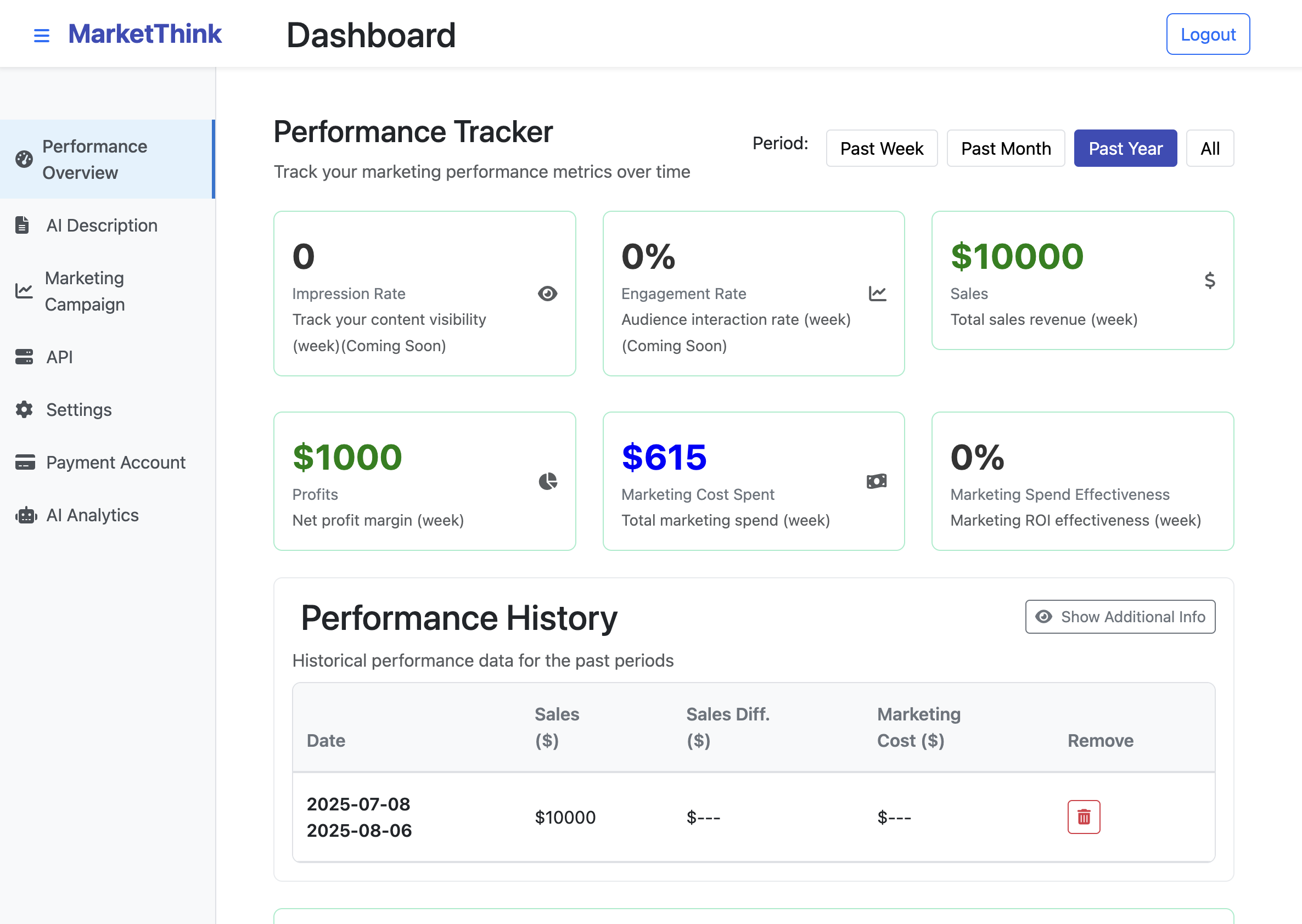 Customised dashboard for user to track business performance against market resources spent.